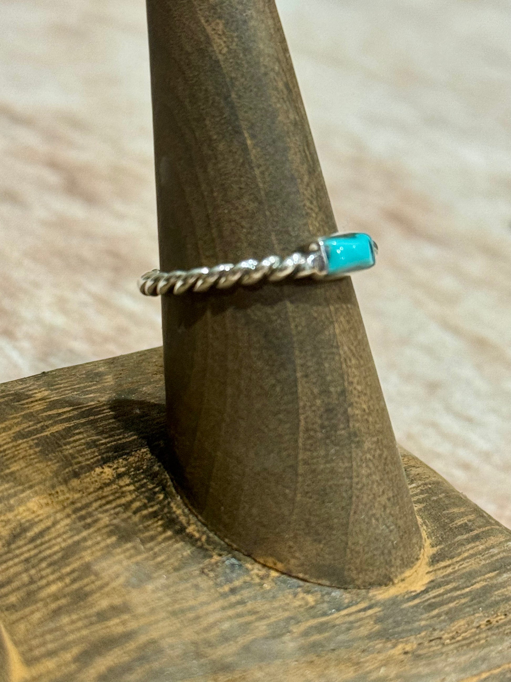 Mini Authentic Turquoise Twist Ring in Sterling Silver Hand Made Sz 6