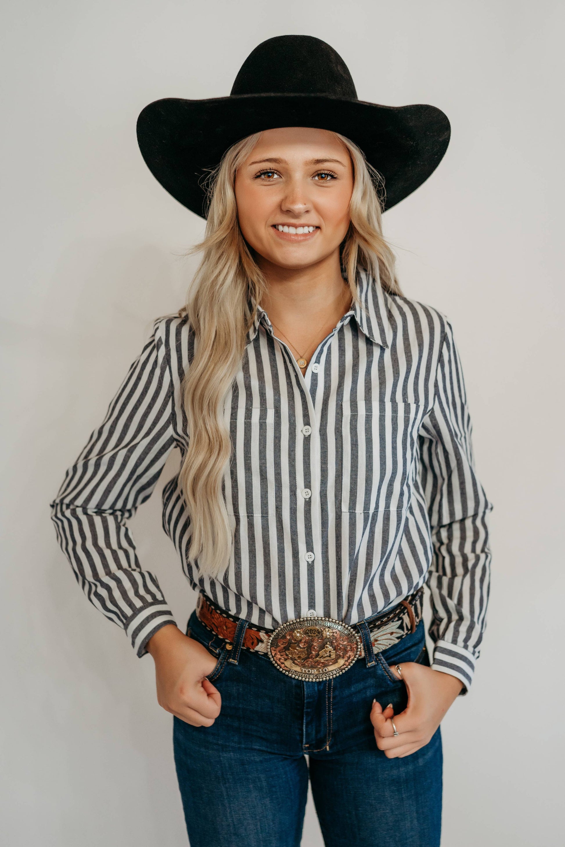 Classic stripes, endless styling options! Whether you’re rocking it in the arena or keeping it casual, this versatile piece is a must-have. True ladies fit